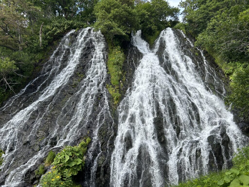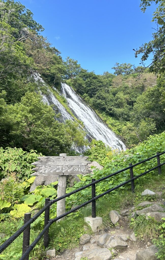 カムイワッカ川にかかる滝で、強酸性の温水が流れ落ちる渓流爆です。世界遺産にも登録されている知床八景のひとつで、滝壺が天然温泉となっている観光名所です。