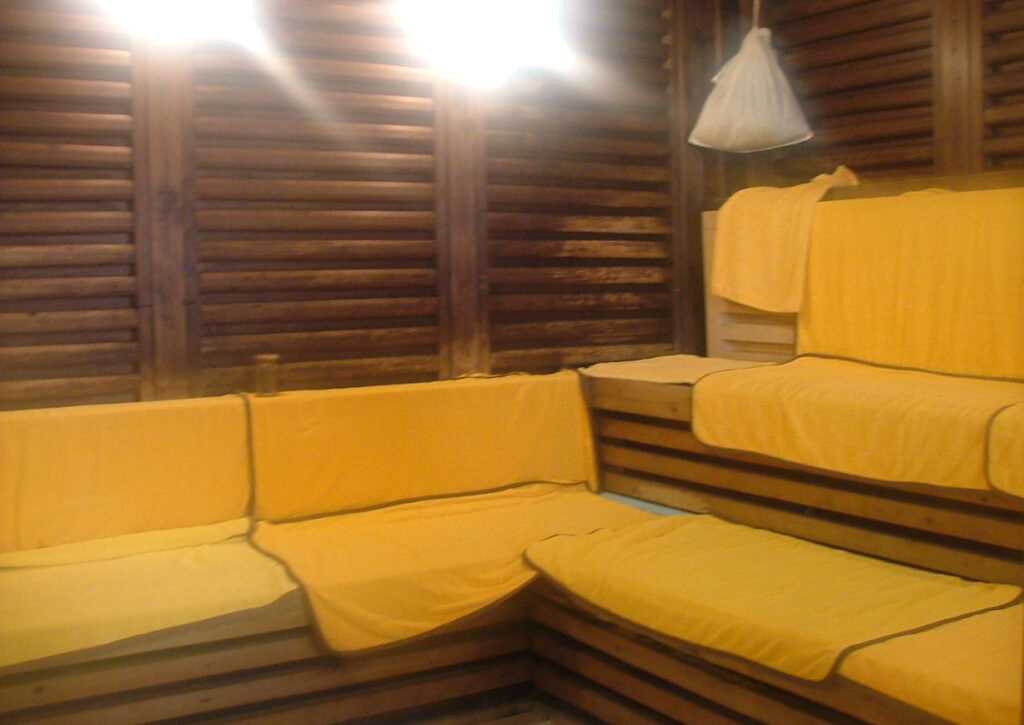 もうひとつの名物が 薬草スチームサウナ。ここでは10種類以上の漢方薬草をブレンドした蒸気が充満し、身体の芯から温められます。鼻から吸い込むと独特の薬草の香りが広がり、呼吸器系に良いと評判です。薬草効果により発汗だけでなく、デトックスや疲労回復も期待できます。